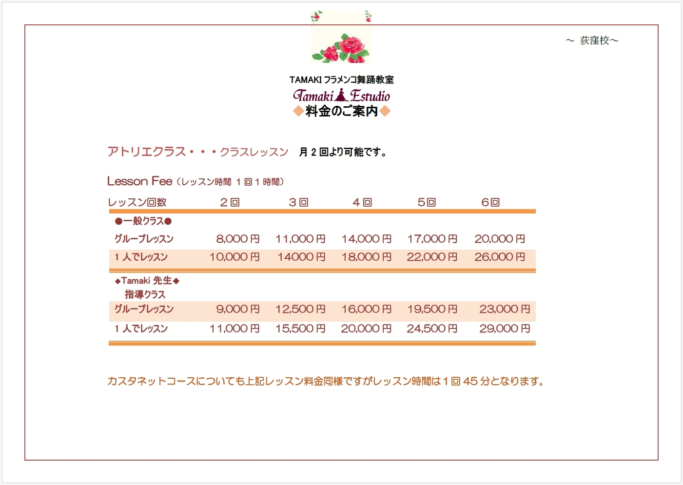 フラメンコ教室ご案内 |
