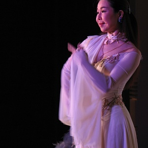 写真:TAMAKIのアルバム 今回のショーでは、シルエットあり、チェロ奏者とのコラボあり、仕掛け窓からの 〜スペイン大使夫人より〜